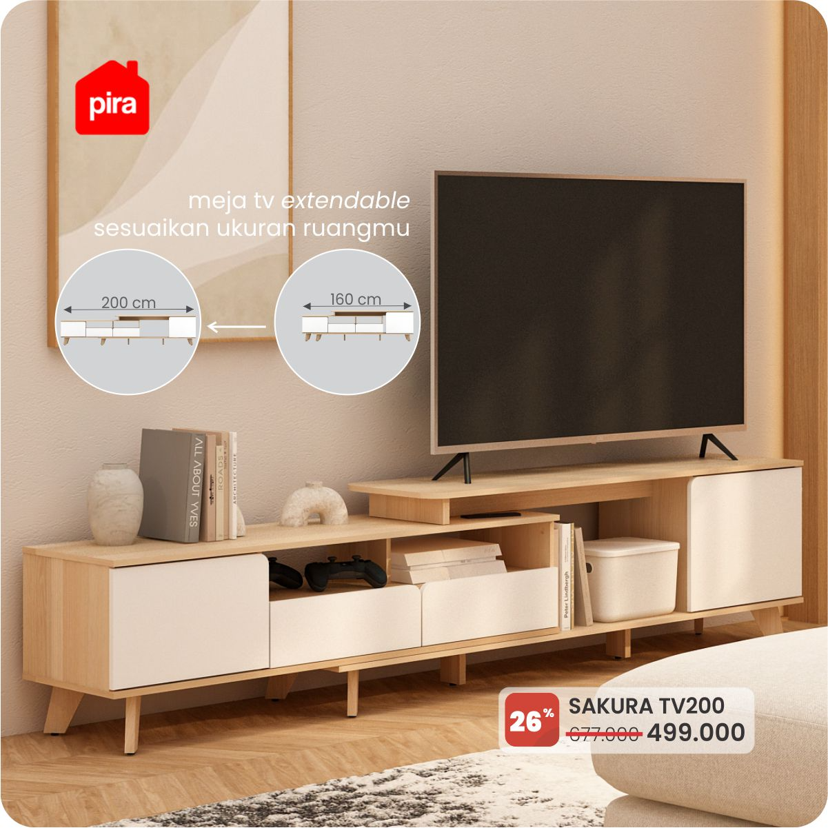 Selanjutnya meja TV yang memberikan kesan modern di rumah kamu karena meja ini extandable yang bisa sesuaikan space di rumah kamu. Siapa lagi kalau bukan SAKURA TV200?