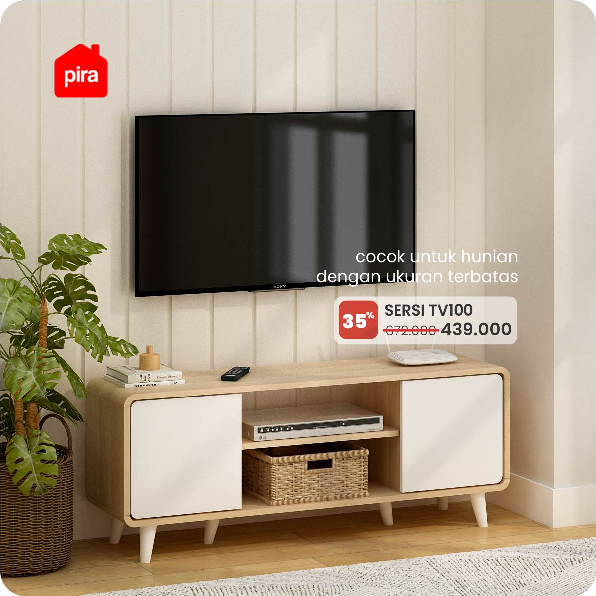 Pilihan lain, meja TV untuk ruangan dengan ukuran terbatas yaitu SERSI TV100. Punya desain yang compact dan minimalis jadi cocok banget untuk ruangan terbatas!