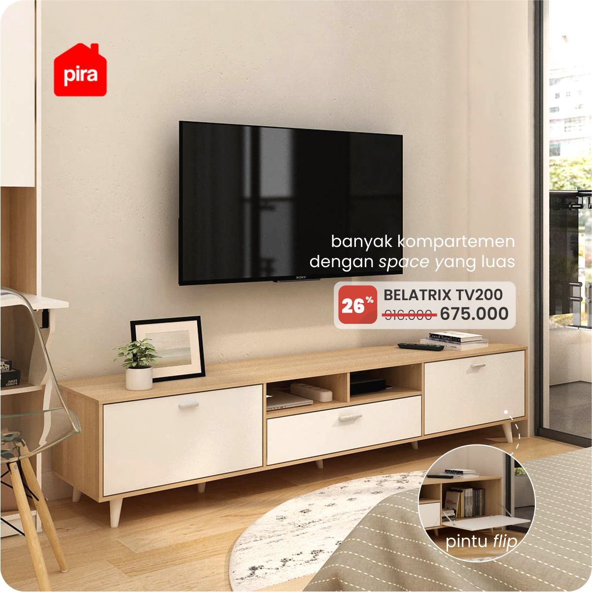 Si best seller dengan ukuran baru, BELATRIX TV200! Hadir dengan banyak kompartemen dengan space yang lebih luas cocok untuk rumah dengan konsep Japandi looks?