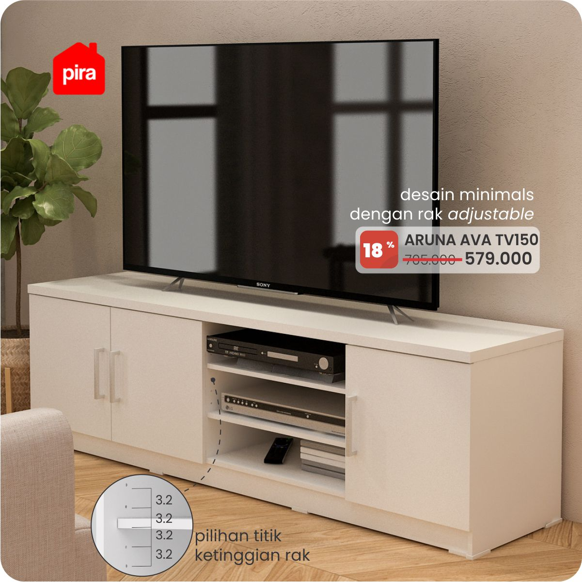 Kemudian, ada meja TV yang punya desain minimalis dan membuat looks di ruangan lebih clean, ARUNA AVA TV150!?