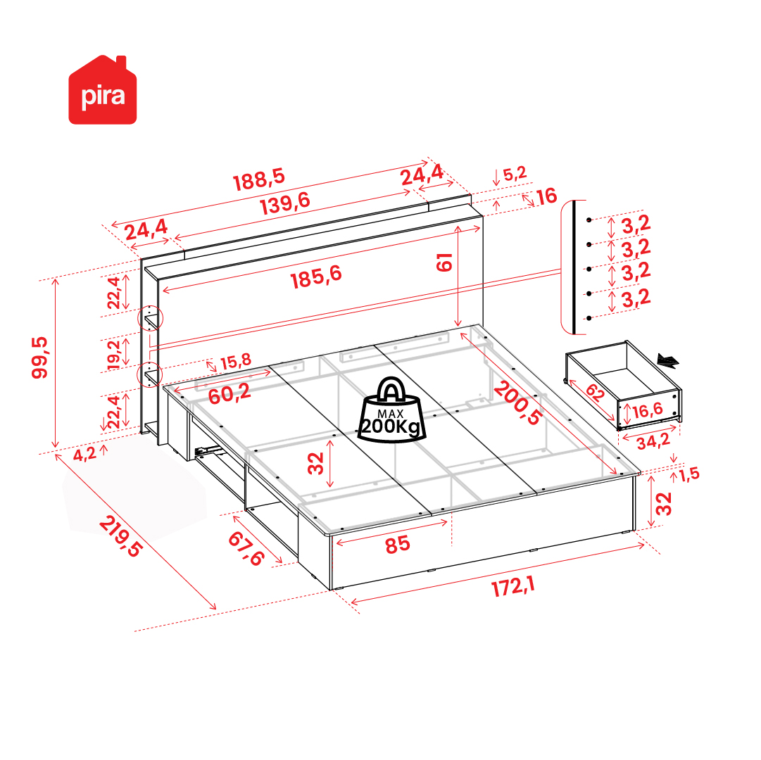 PIRA BAVARIAN - MORGAN BD 180 DIPAN / RANJANG / TEMPAT TIDUR DENGAN LACI PENYIMPANAN