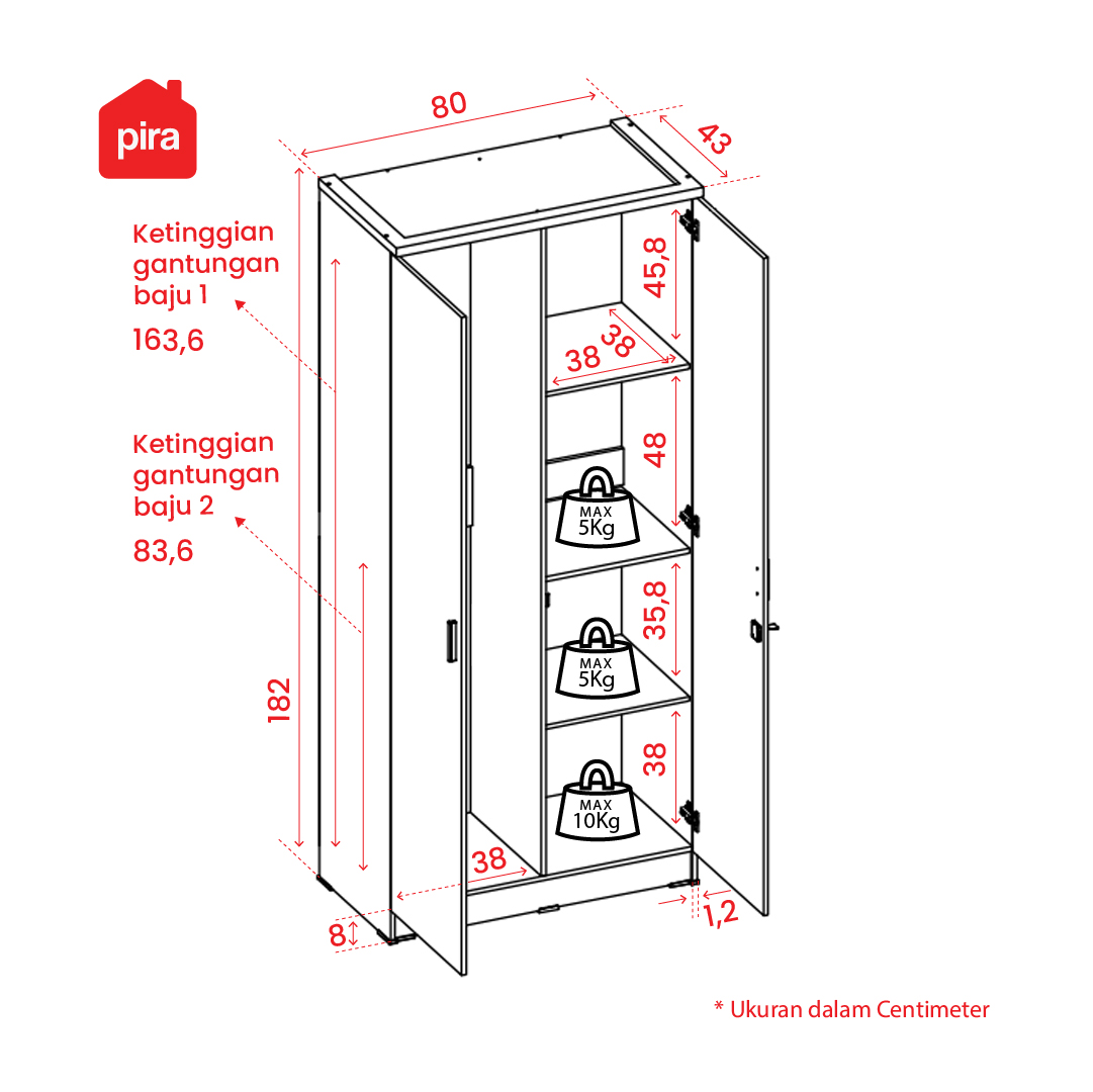 • Material Grade A hardwood particle board (kualitas terbaik) • Ketebalan part 12 mm • Laminasi paper sehingga lebih awet • Lemari pakaian 2 pintu berdesain garis kotak minimalis, mudah dipadukan dengan berbagai desain interior • Dilengkapi 2 area gantung baju, cocok untuk simpan dress, jas, dan baju panjang lainnya • Dilengkapi 4 rak susun untuk simpan baju lipat, tas, dan box organizer yang mudah dijangkau • Dilengkapi cermin tebal 2 mm untuk cek ootd sebelum beraktivitas • Pintu lemari dilengkapi fitur penguncian untuk keamanan ekstra • Handle kayu minimalis, memberi kesan rapi dan elegan • Dilengkapi tatakan kaki untuk melindungi lantai dari goresan • Dikirim dalam flatpack namun mudah dirakit, tersedia petunjuk + video tutorial di YouTube • Tersedia jasa perakitan di area JABODETABEK, Surabaya, Sidoarjo dan Gresik • Garansi 14 hari, syarat & ketentuan berlaku |