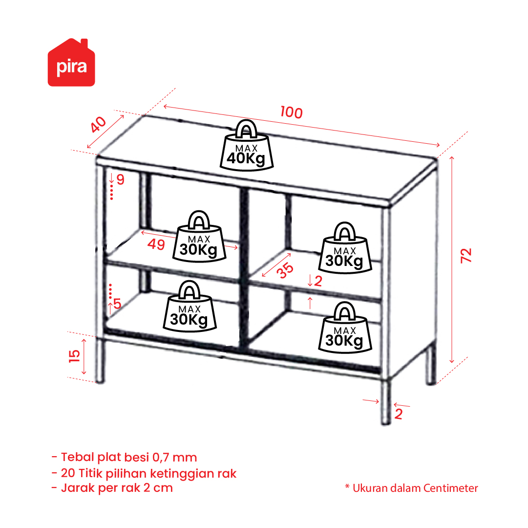 ✅ material: metal ✅ epoxy powder coating ✅ Panjang, lebar, & tinggi: 100 x 40 x 72 cm |