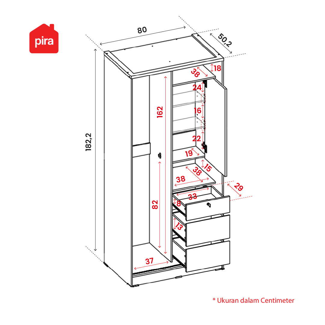 • Material Grade A hardwood particle board (kualitas terbaik) • Ketebalan part 12 mm • Laminasi paper sehingga lebih awet • Bagian atas lemari lebih tebal menggunakan PB12+12 mm • Pintu lemari sliding hemat ruang, praktis digunakan, dan tampil modern • Handle minimalis untuk ruang yang lebih rapi • Cermin extra besar, dengan ketebalan cermin 2 mm • Dilengkapi penjepit cermin, lebih aman dan stabil • Dilengkapi 2 gantungan baju lepas-pasang, cocok untuk simpan kemeja, jas, dan gamis • Dilengkapi 3 rak makeup dibalik pintu cermin dan 2 rak terbuka • Dilengkapi 1 laci kecil dengan fitur penguncian dan 2 laci besar tanpa penguncian • Laci dilengkapi rel besi untuk memudahkan buka-tutup laci • Dilengkapi tatakan kaki untuk mencegah goresan pada lantai • Dikirim dalam flatpack namun mudah dirakit, tersedia petunjuk + video tutorial di YouTube • Tersedia jasa perakitan di area JABODETABEK, Surabaya, Sidoarjo dan Gresik • Garansi 14 hari, syarat & ketentuan berlaku |