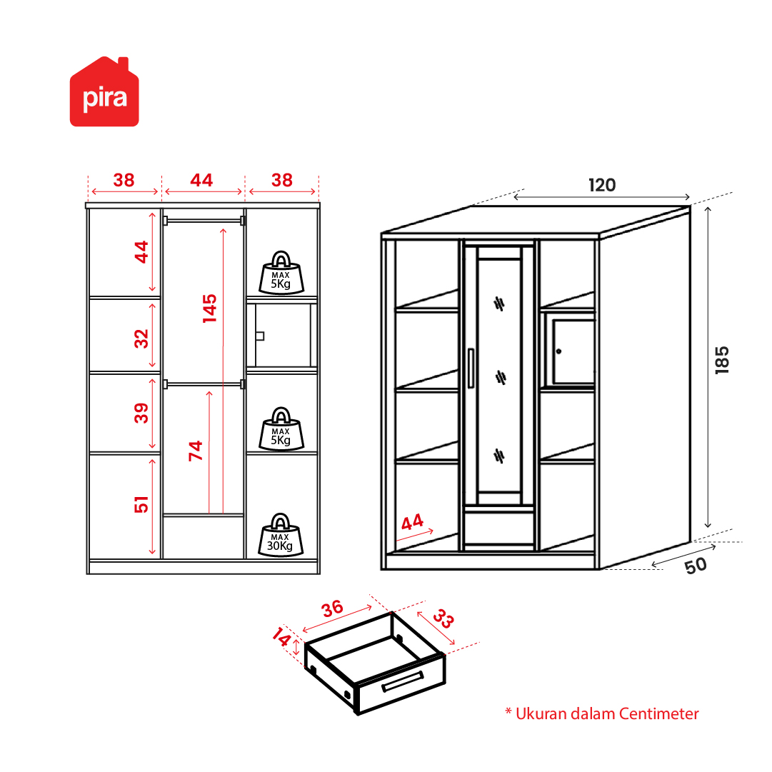 PIRA - CATTA 3A SSL MWD LEMARI PAKAIAN BESI 3 PINTU