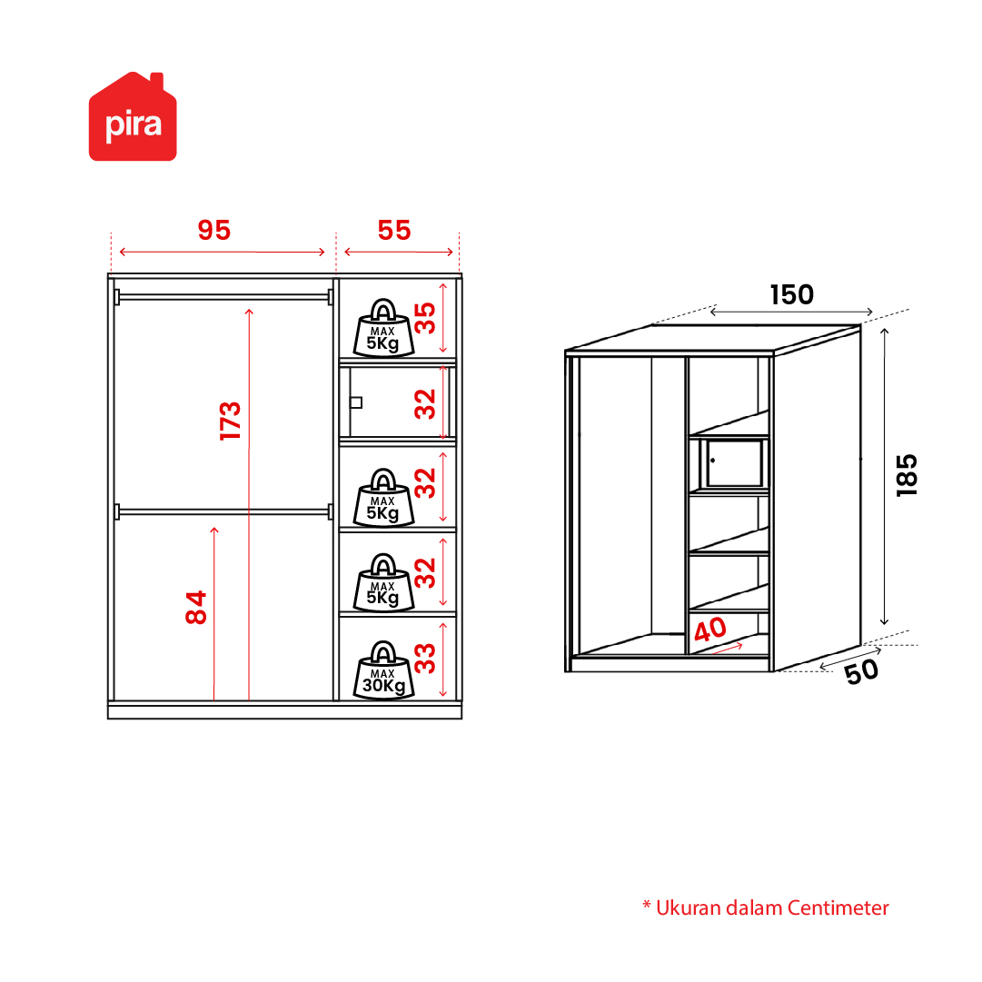 PIRA - ASHTON 150A N MWDSL LEMARI PAKAIAN BESI SLIDING / GESER MOTIF KAYU