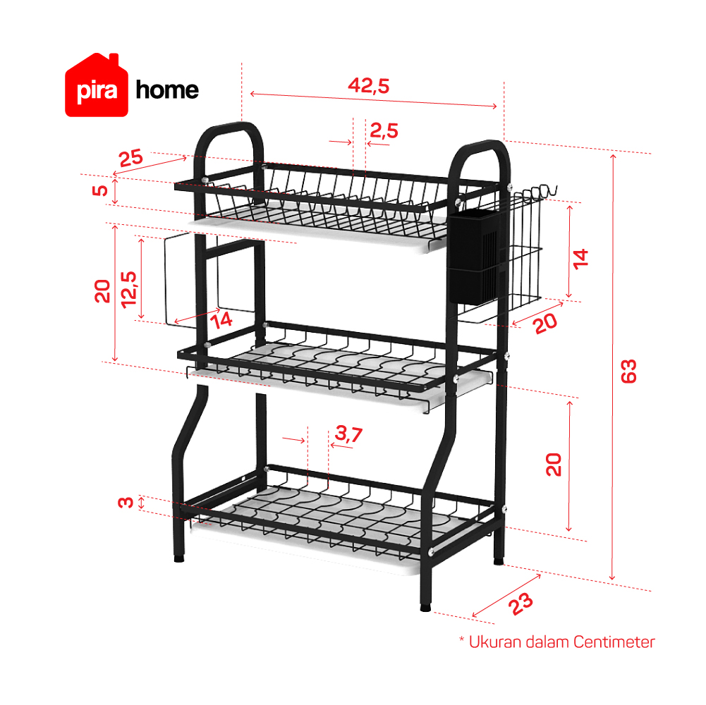 PIRA HOME - DISH DR3T RAK CUCI PIRING WASTAFEL / RAK DAPUR BESI 3 SUSUN