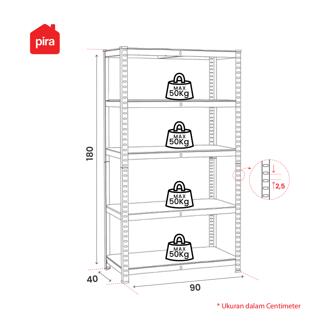 PIRA METROPOLIS - BROCK MSU 90X40 RAK SUSUN SERBAGUNA / RAK SUSUN BESI / RAK BESI SERBAGUNA / RAK GUDANG / RAK PENYIMPANAN