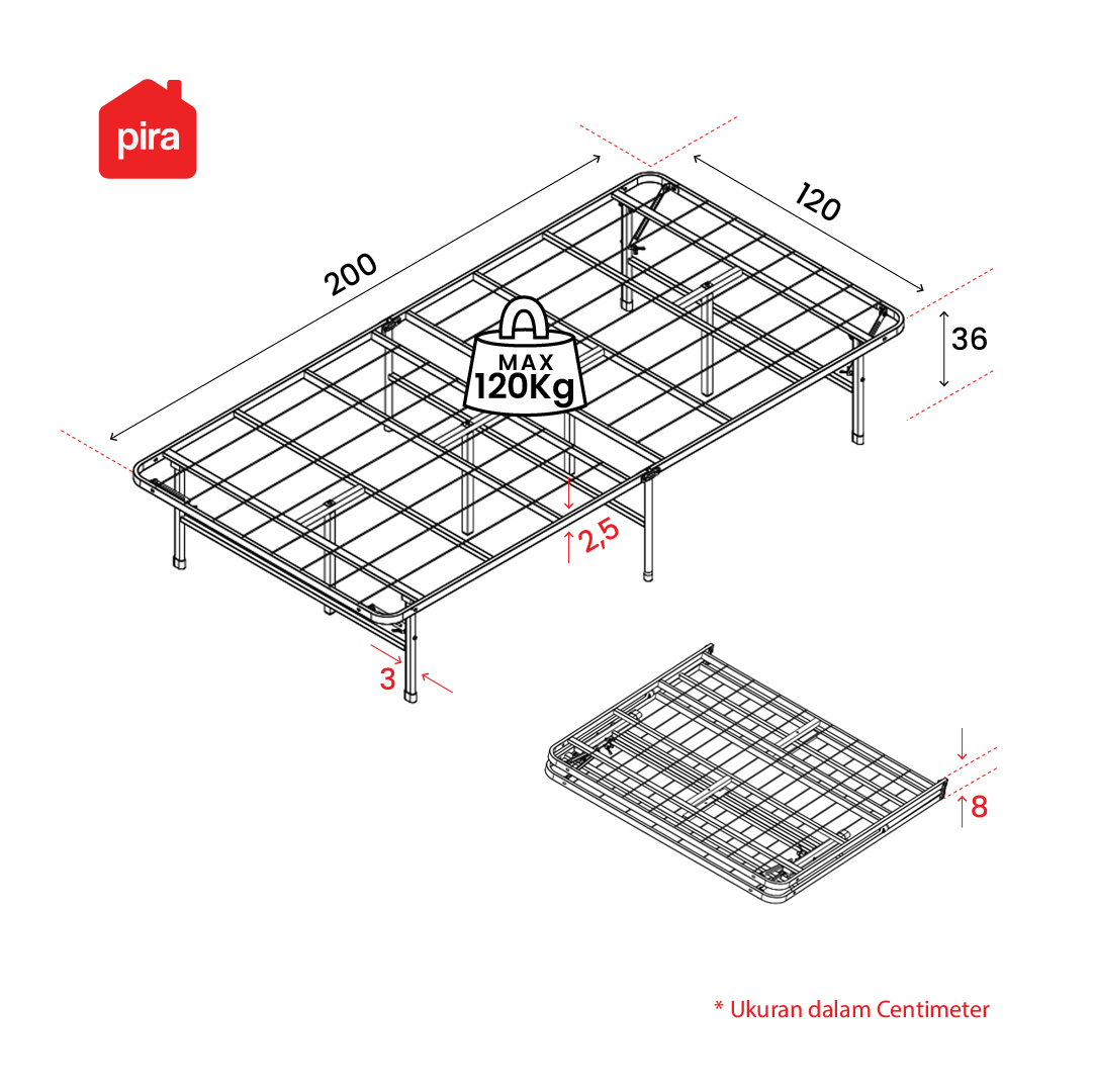 PIRA - BASE FOLDING MBD120 DIPAN BESI / RANJANG / TEMPAT TIDUR BESI