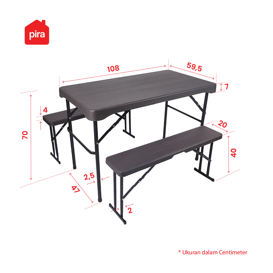 PIRA - FOLDA FD108 BC W SET MEJA LIPAT OUTDOOR / MEJA SERBAGUNA / MEJA PIKNIK / MEJA MAKAN