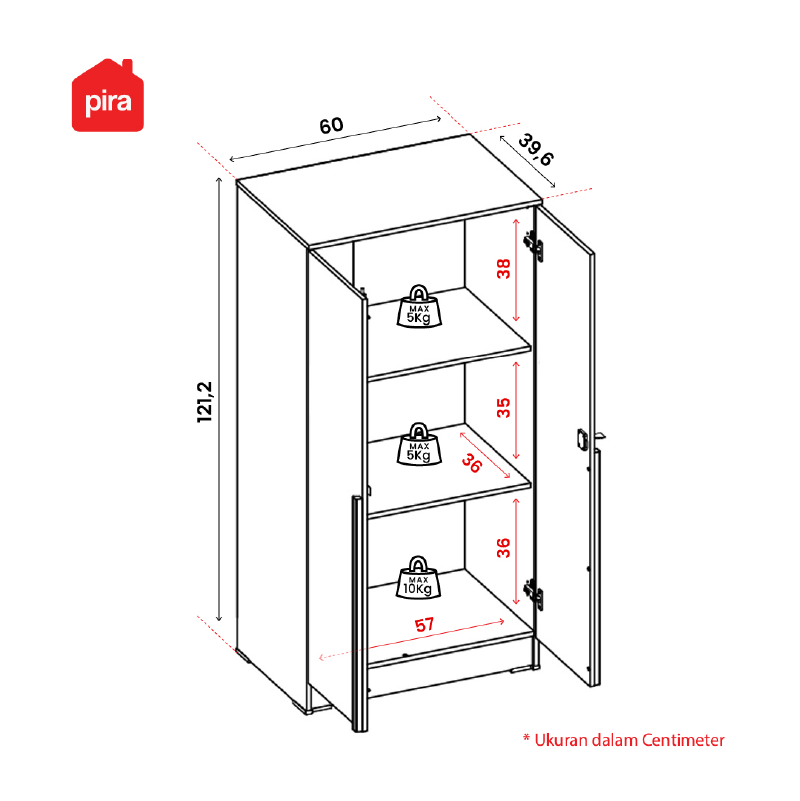 PIRA METROPOLIS - YONA BLS60 LEMARI PAKAIAN MEDIUM 2 PINTU FULL RAK