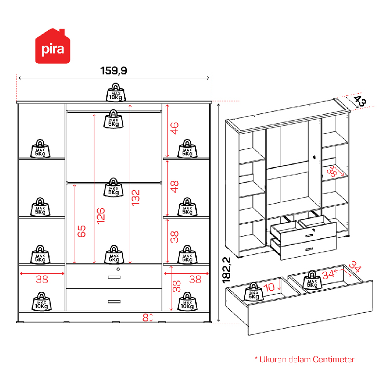 • Material Grade A hardwood particle board (kualitas terbaik) • Ketebalan part 12 mm • Laminasi paper sehingga lebih awet • Lemari pakaian 4 pintu 2 laci dengan dengan ruang penyimpanan yang luas • Terdapat 2 area gantungan di bagian tengah lemari yang dapat dilepas pasang, cocok untuk menggantung dress • Terdapat 8 area rak yang luas, dapat digunakan untuk menyimpan kemeja dan baju lipat sampai dengan selimut • Pintu bagian tengah dilengkapi cermin tinggi, mempermudah untuk melihat penampilan • Pemasangan cermin dapat diletakkan di luar atau di dalam lemari • Bagian bawah lemari dilengkapi 2 laci luas, cocok untuk menyimpan kaos kaki ataupun aksesoris lainnya • Laci dilengkapi rel besi, mempermudah buka-tutup laci lebih smooth • Dilengkapi handle minimalis yang nyaman dipegang • Lemari dan laci dilengkapi kunci, menjaga barang lebih aman saat disimpan • Dilengkapi tatakan untuk mencegah goresan pada lantai • Dikirim dalam flatpack namun mudah dirakit, tersedia petunjuk + video tutorial di YouTube • Tersedia jasa perakitan di area JABODETABEK, Surabaya, Sidoarjo dan Gresik • Garansi 14 hari, syarat & ketentuan berlaku |