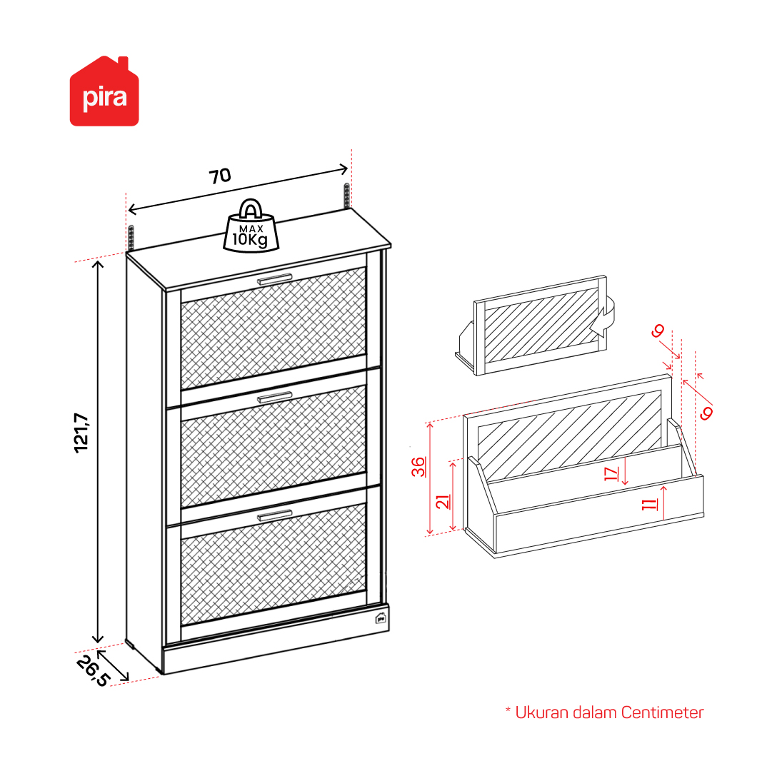 PIRA METROPOLIS - YORK SR RAK SEPATU / LEMARI SEPATU / RAK SEPATU SUSUN TERTUTUP / RAK SEPATU ROTAN