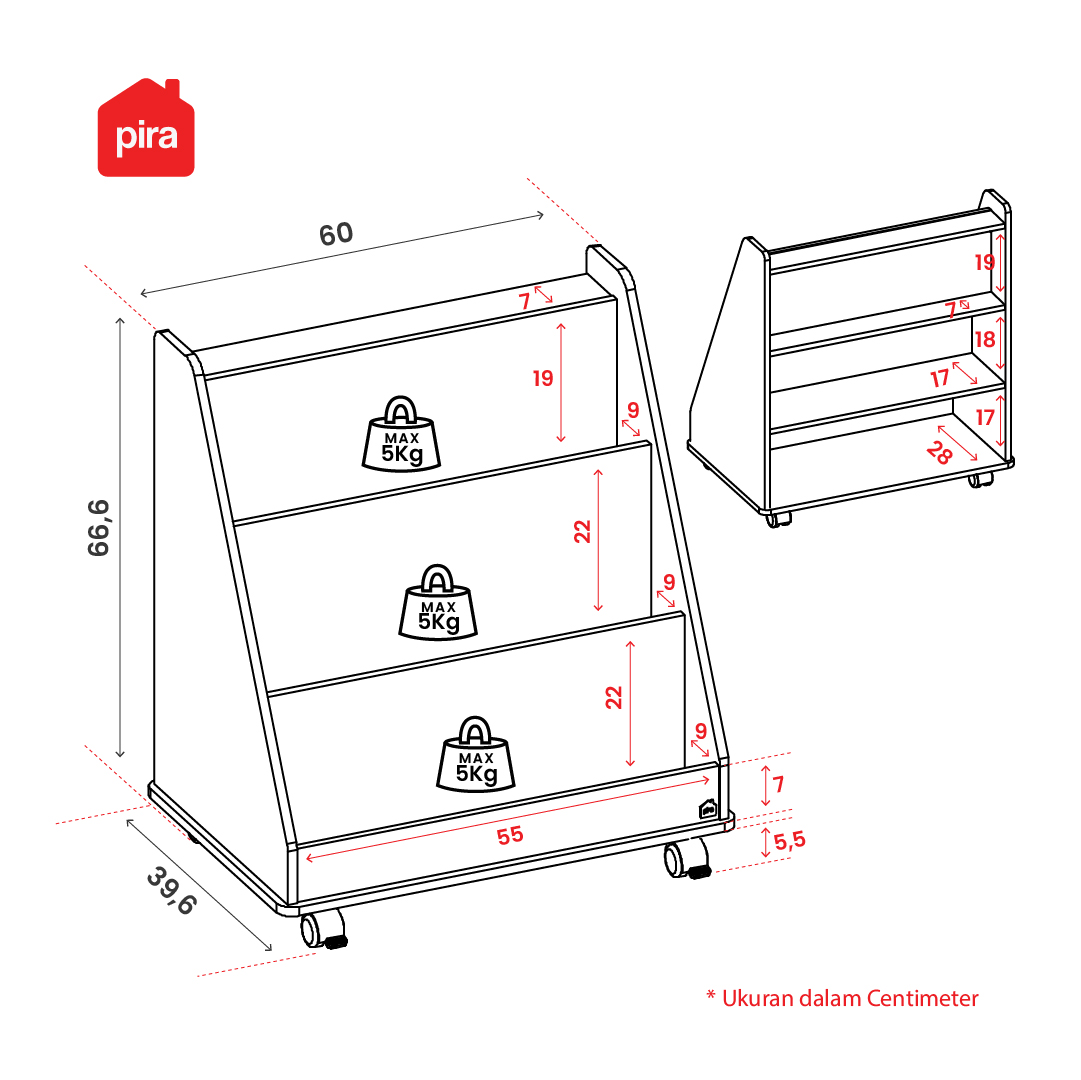 • Material Grade A hardwood particle board (kualitas terbaik) • Ketebalan 12mm • Laminasi paper sehingga lebih awet • Rak Montessori untuk menyimpan buku sekaligus mainan anak • Memiliki 3 tingkat rak, mempermudah untuk menyimpan dan mengambil buku • Bagian belakang terdapat ruang rak terbuka untuk menyimpan barang dan mainan • Masing-masing bagian rak depan mampu menopang berat hingga 5 kg • Sudut rak tumpul, lebih aman untuk anak • Dilengkapi roda yang dapat diputar 360°, lebih mudah untuk dipindahkan • Roda depan dilengkapi dengan rem, menjaga rak tetap stabil dan tidak mudah bergeser, serta aman dari dorongan anak kecil • Dikirim dalam flatpack namun mudah dirakit, tersedia petunjuk + video tutorial di YouTube • Tersedia jasa perakitan di area JABODETABEK, Surabaya, Sidoarjo dan Gresik • Garansi 14 hari, syarat & ketentuan berlaku |