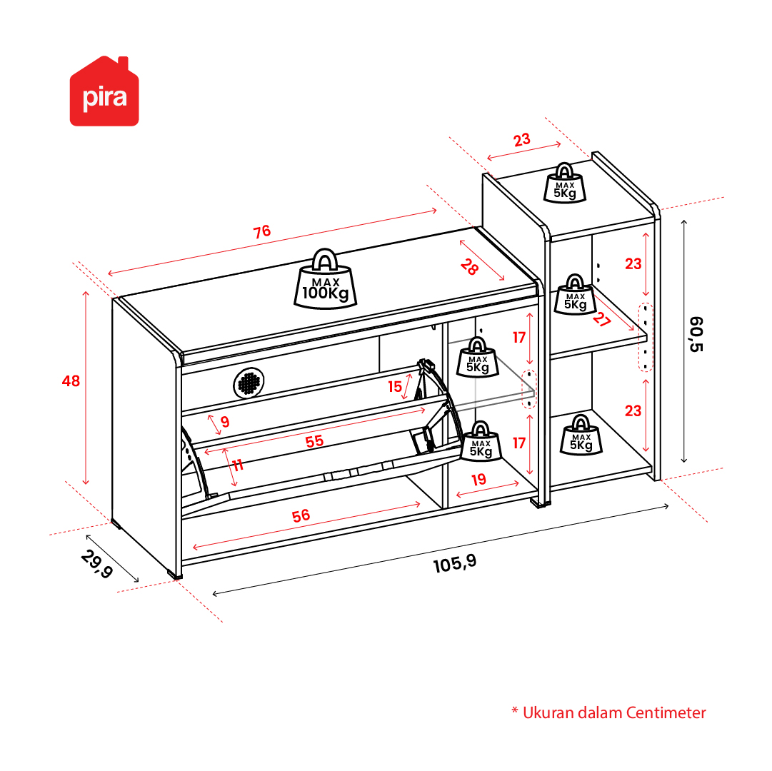 PIRA METROPOLIS - PINO SR100 PF RAK SEPATU / RAK SEPATU DUDUK / LEMARI SEPATU
