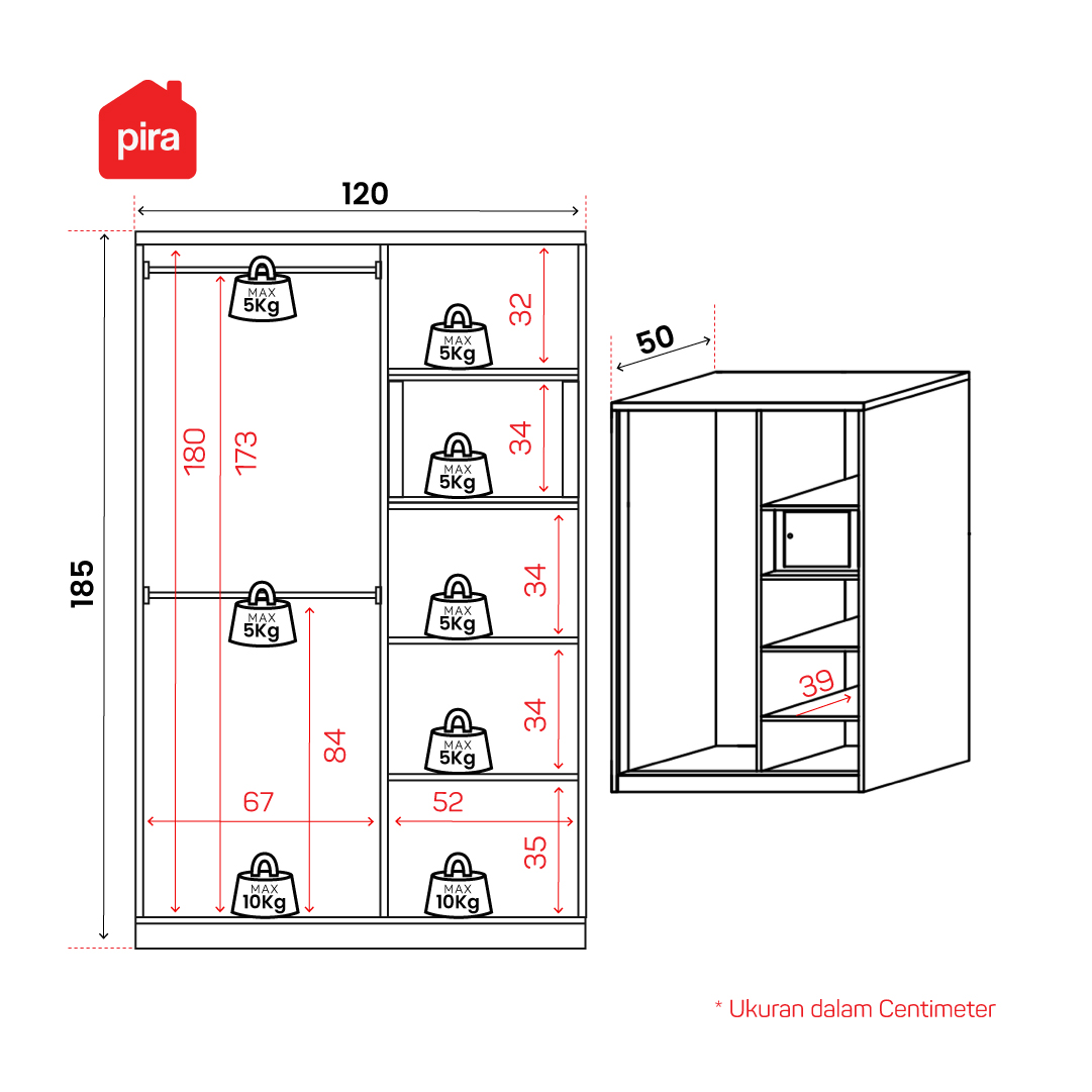 PIRA - LINIO 120A N MWDSL LEMARI PAKAIAN BESI SLIDING / PINTU GESER