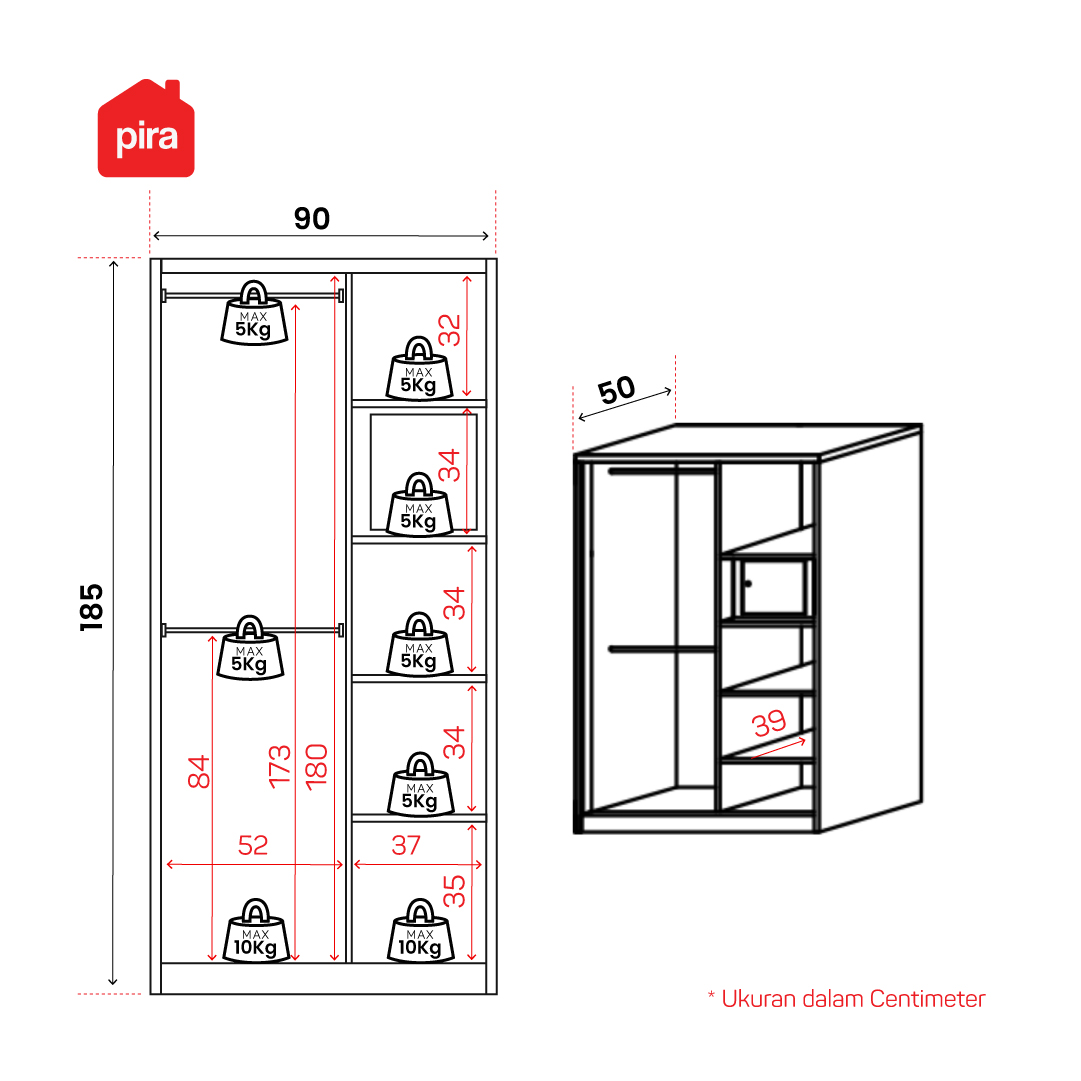 PIRA - ASHTON A 90A MWDSL LEMARI PAKAIAN BESI SLIDING / GESER MOTIF KAYU