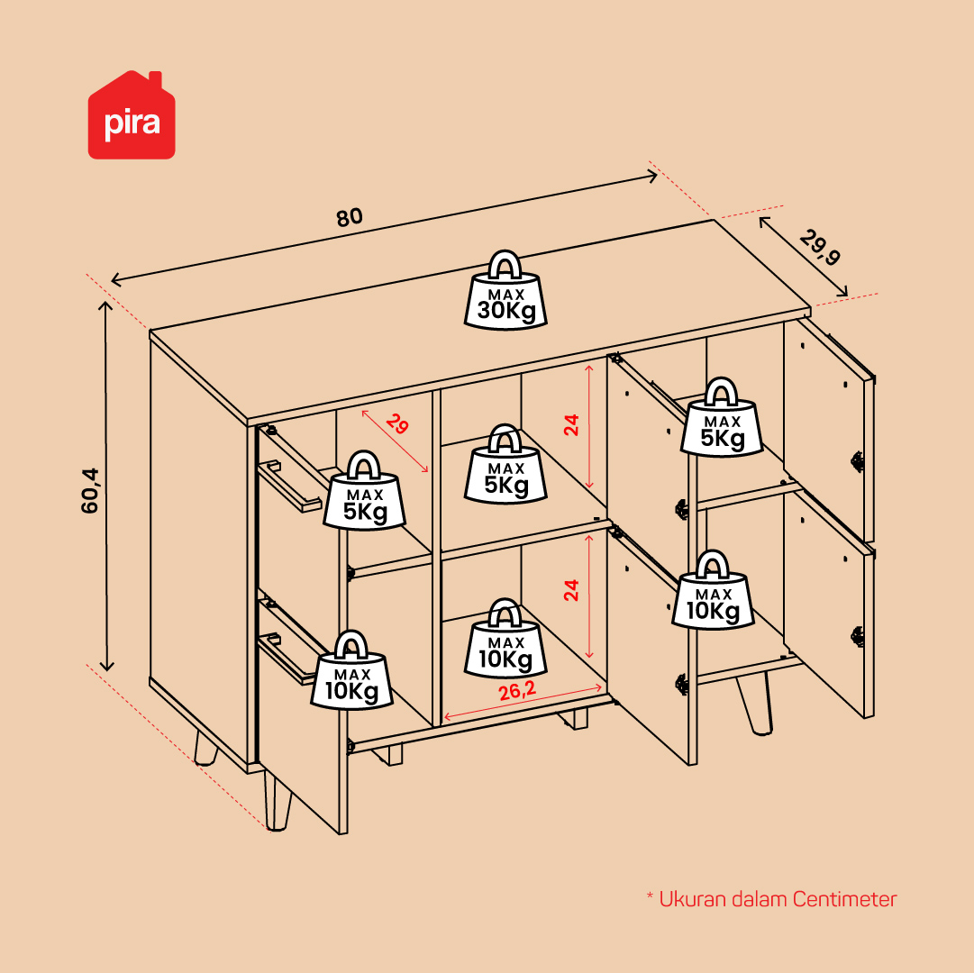 ✅ Material Grade A hardwood particle board (kualitas terbaik) ✅ Ketebalan part 12 mm ✅ Laminasi paper sehingga lebih awet ✅ Bufet mini 6 pintu serbaguna dengan ruang penyimpanan luas, cocok untuk menyimpan buku, mainan, perlengkapan rumah, hingga stok jajanan ✅ Bufet multifungsi, bisa jadi meja TV keren sekaligus penyimpanan praktis! ✅ Ada catches (pengait pintu jadi rapi saat tertutup) ✅ Handle minimalis yang fungsional, bisa buat gantungan lap ✅ Meja dengan kaki yang tinggi, sehingga lantai bawahnya mudah dibersihkan ✅ Dikirim dalam flatpack namun mudah dirakit, tersedia petunjuk + video tutorial di YouTube ✅ Tersedia jasa perakitan di area JABODETABEK, Surabaya, Sidoarjo dan Gresik ✅ Garansi 14 hari, syarat & ketentuan berlaku |