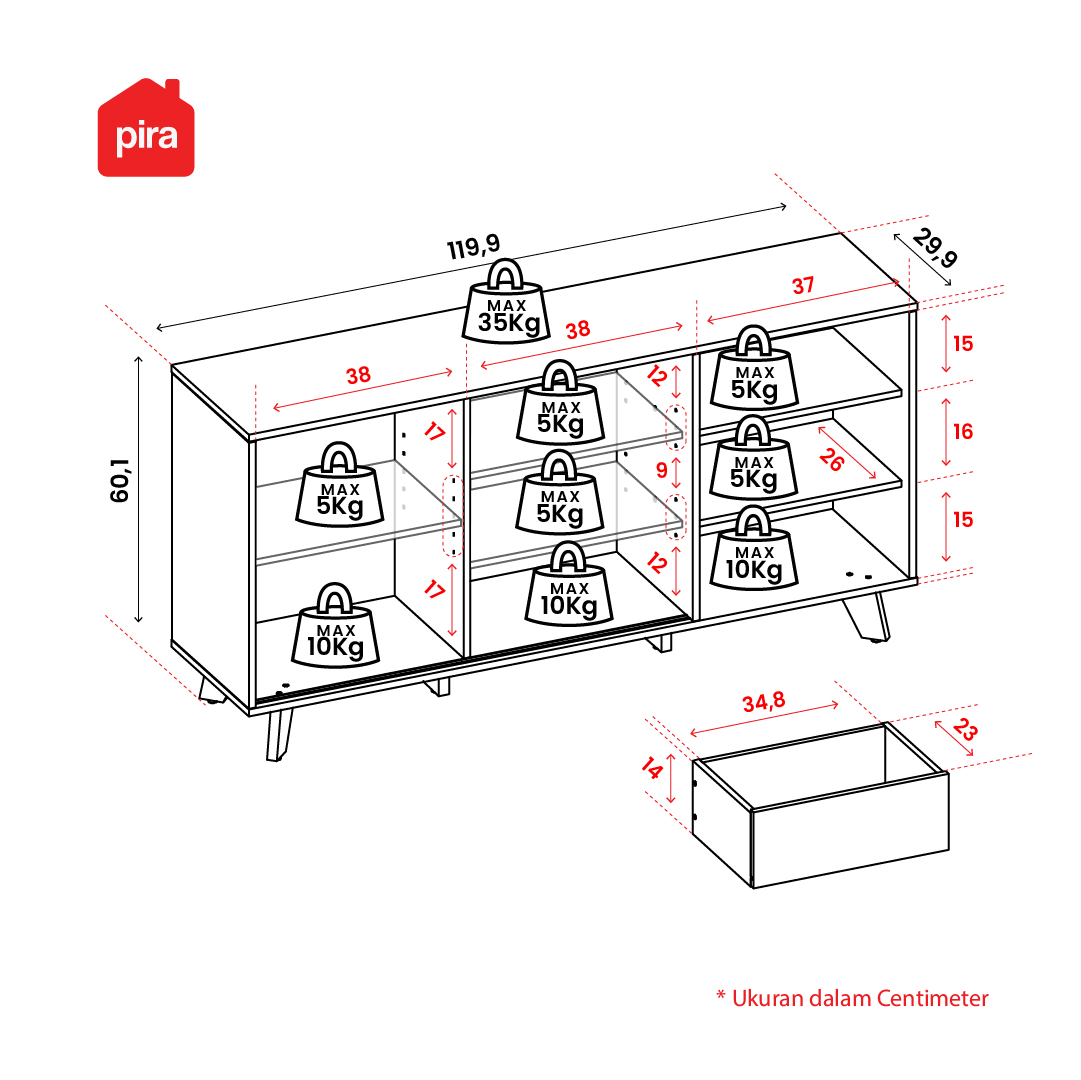 PIRA METROPOLIS - SENDAI TV121 MEJA TV / RAK TV / LEMARI TV / KABINET TV / BUFET TV