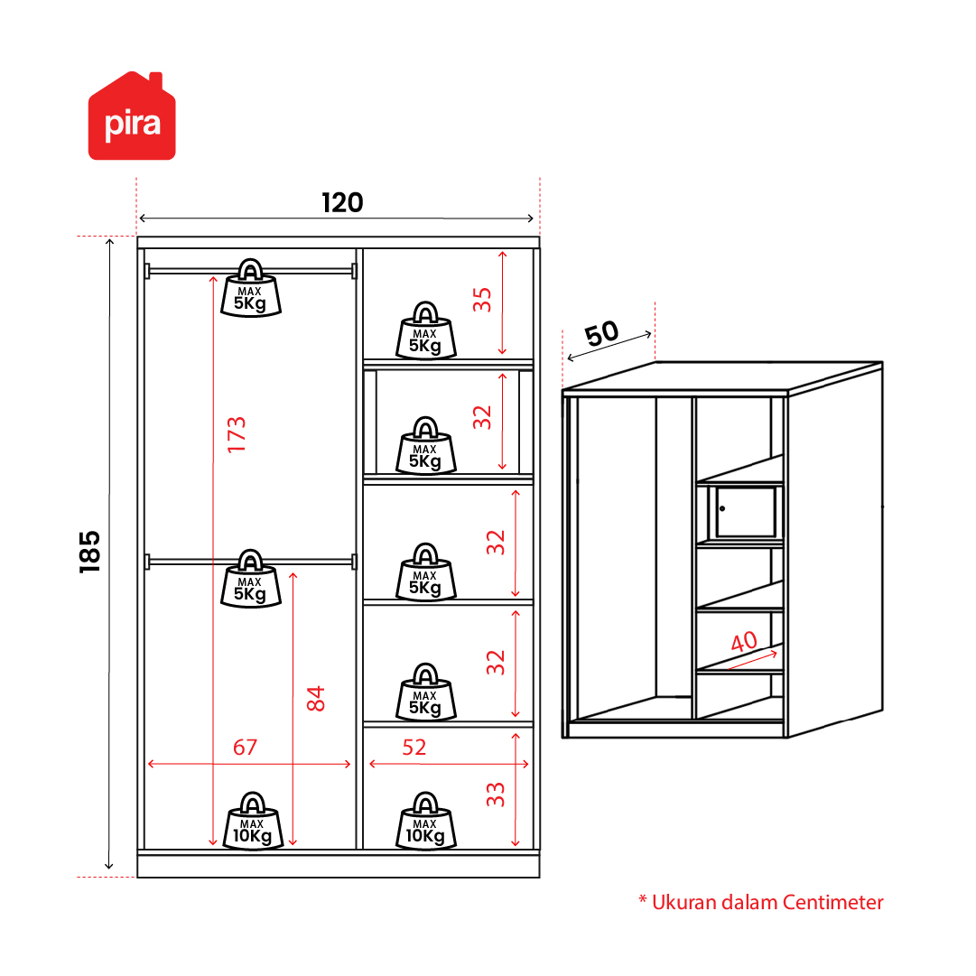 PIRA - SAXON A 120A N MWDSL LEMARI PAKAIAN BESI SLIDING / PINTU GESER
