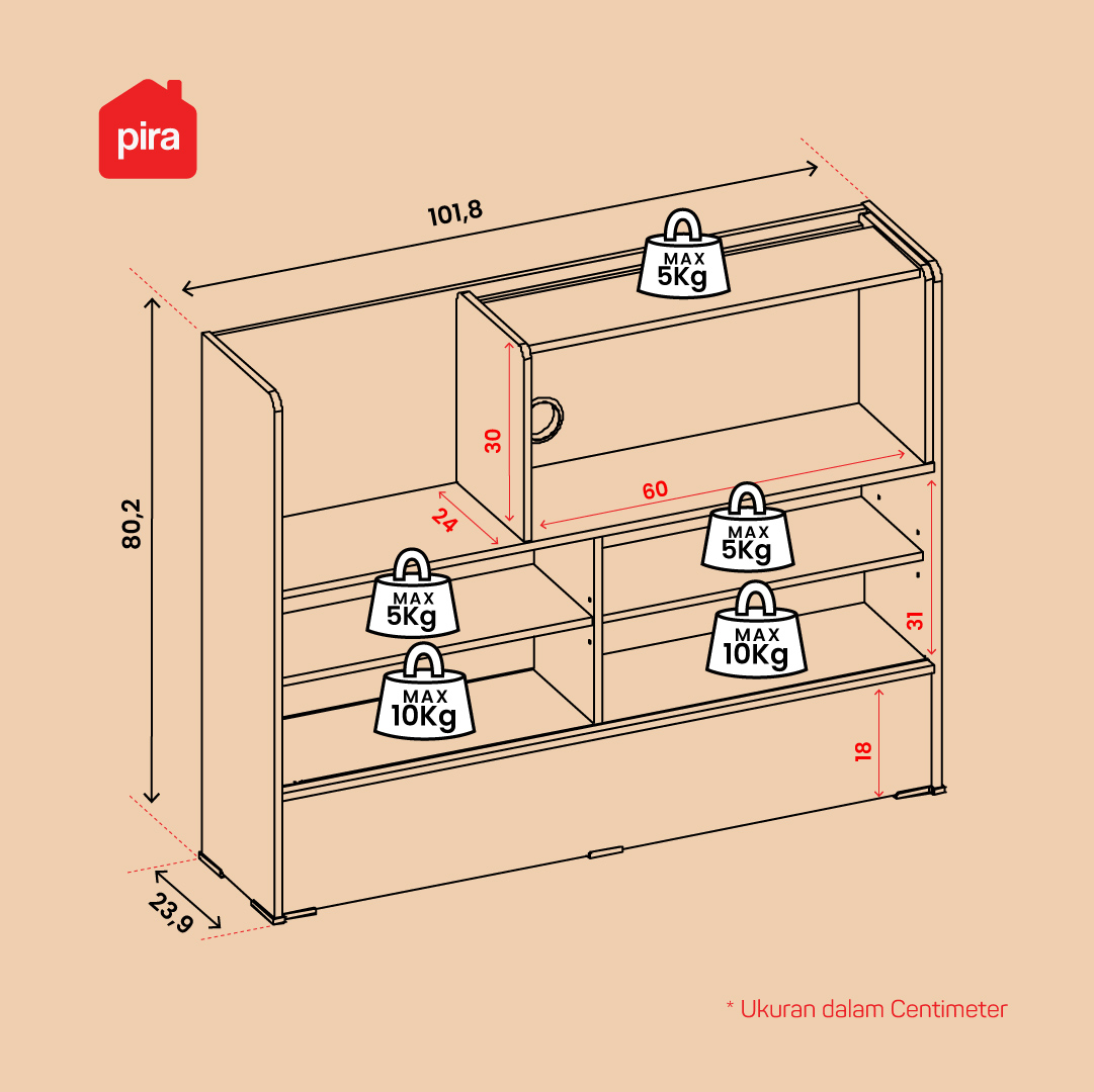 PIRA - NUBO HB100 HEADBOARD KASUR / SANDARAN KASUR / DIPAN / DIPAN TEMPAT TIDUR / HEADBOARD DIPAN DENGAN RAK BUKU
