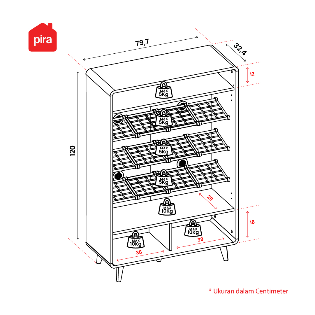 • Material Grade A hardwood particle board (kualitas terbaik) • Ketebalan part 15 mm • Laminasi paper sehingga lebih awet • Rak sepatu dengan 2 pintu bermotif anyaman rotan, meningkatkan kesan hangat dan natural ruangan • Desain scandinavian minimalis, cocok untuk berbagai gaya interior • Bagian atas rak bisa untuk simpan tas, dekorasi, dan barang lainnya • Sudut melengkung (curve edge) lebih aman dan nyaman • Terdapat penyimpanan terbuka untuk organizer, akses lebih praktis • Muat hingga 20 pasang sepatu berbagai model dengan panjang maksimal 28 cm • Handle plastik minimalis berbentuk circle • Dilengkapi lubang sirkulasi udara menjaga sepatu tetap segar dan tidak pengap • Kaki rak plastik berbentuk kerucut, stabil, kuat, dan lebih mudah dibersihkan • Bagian bawah rak dapat berfungsi menyimpan sandal harian • Dikirim dalam flatpack namun mudah dirakit, tersedia petunjuk + video tutorial di YouTube • Tersedia jasa perakitan di area JABODETABEK, Surabaya, Sidoarjo dan Gresik • Garansi 14 hari, syarat & ketentuan berlaku |