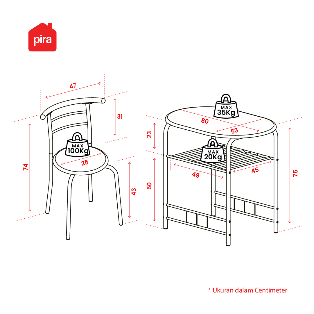 • Material rangka meja dan kursi bahan Metal • Permukaan meja dan dudukan kursi berbahan PB 15 mm • Meja makan untuk 2 orang, cocok untuk ruang makan minimalis • Top table dan dudukan kursi laminasi PVC, lebih awet, mudah dibersihkan, dan anti air • Desin meja oval, lebih aman dan nyaman saat digunakan • Sandaran kursi lengkung dan bentuk dudukan bulat mampu menampung beban hingga 100 kg • Tersedia penyimpanan bawah meja untuk perlengkapan makan • Dilengkapi tatakan kaki, melindungi furnitur dari goresan • Dikirim dalam flatpack namun mudah dirakit, tersedia petunjuk + video tutorial di YouTube • Tersedia jasa perakitan di area JABODETABEK, Surabaya, Sidoarjo dan Gresik • Garansi 14 hari, syarat & ketentuan berlaku |