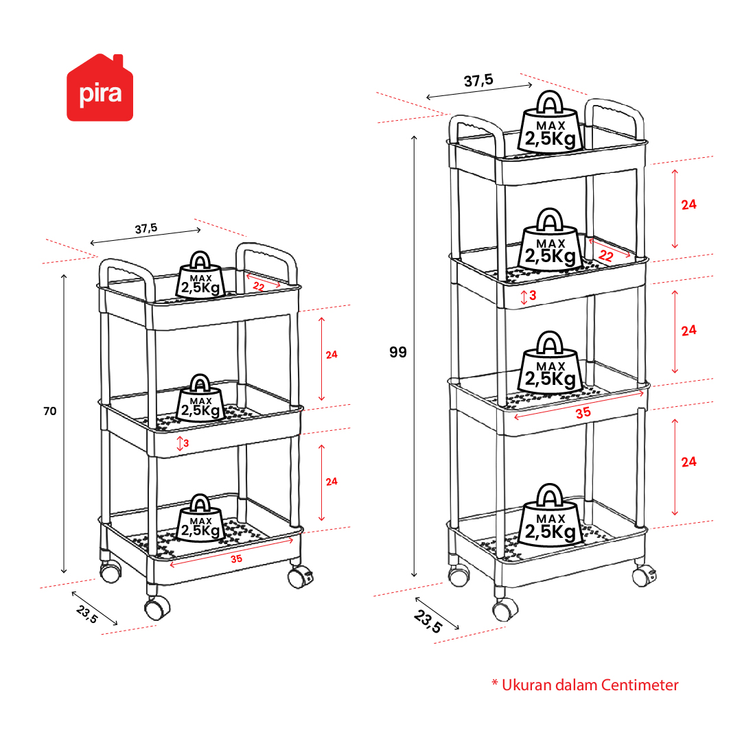 PIRA METROPOLIS - SORA PKT3 RAK TROLI / RAK PENYIMPANAN / RAK SERBAGUNA / RAK SUSUN / RAK PLASTIK 3/4 SUSUN DENGAN RODA