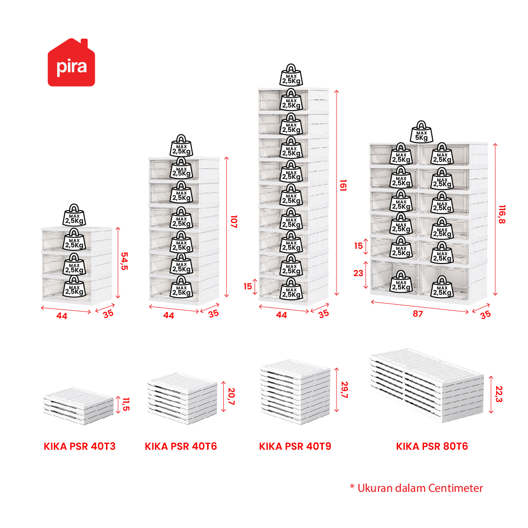 • Material PP (Polypropylene), Material AS (Acrylonitrile Styrene) kuat dan tahan lama • Rak sepatu lipat plastik multifungsi, praktis, ringan, dan hemat ruang • Rak sepatu foldable tanpa perlu instal, lebih mudah dirakit dan dibongkar kapan saja • Pintu rak dilengkapi fitur magnet • Pintu rak transparan, memudahkan ketika mencari sepatu yang diinginkan • Bagian top rak tebal dan kuat, mampu menahan beban hingga 2,5 kg • Dapat digunakan sebagai pedestal dan diletakkan di ruang tamu ataupun teras • Varian KIKA PSR 40T3 muat hignga 6 pasang sepatu • Varian KIKA PSR 40T6 muat hingga 12 pasang sepatu • Varian KIKA PSR 40T9 muat hingga 18 pasang sepatu • Varian KIKA PSR 80T6 muat hingga 24 pasang sepatu • Dikirim dalam flatpack namun mudah dirakit, tersedia petunjuk + video tutorial di YouTube • Tersedia jasa perakitan di area JABODETABEK, Surabaya, Sidoarjo dan Gresik • Garansi 14 hari, syarat & ketentuan berlaku |