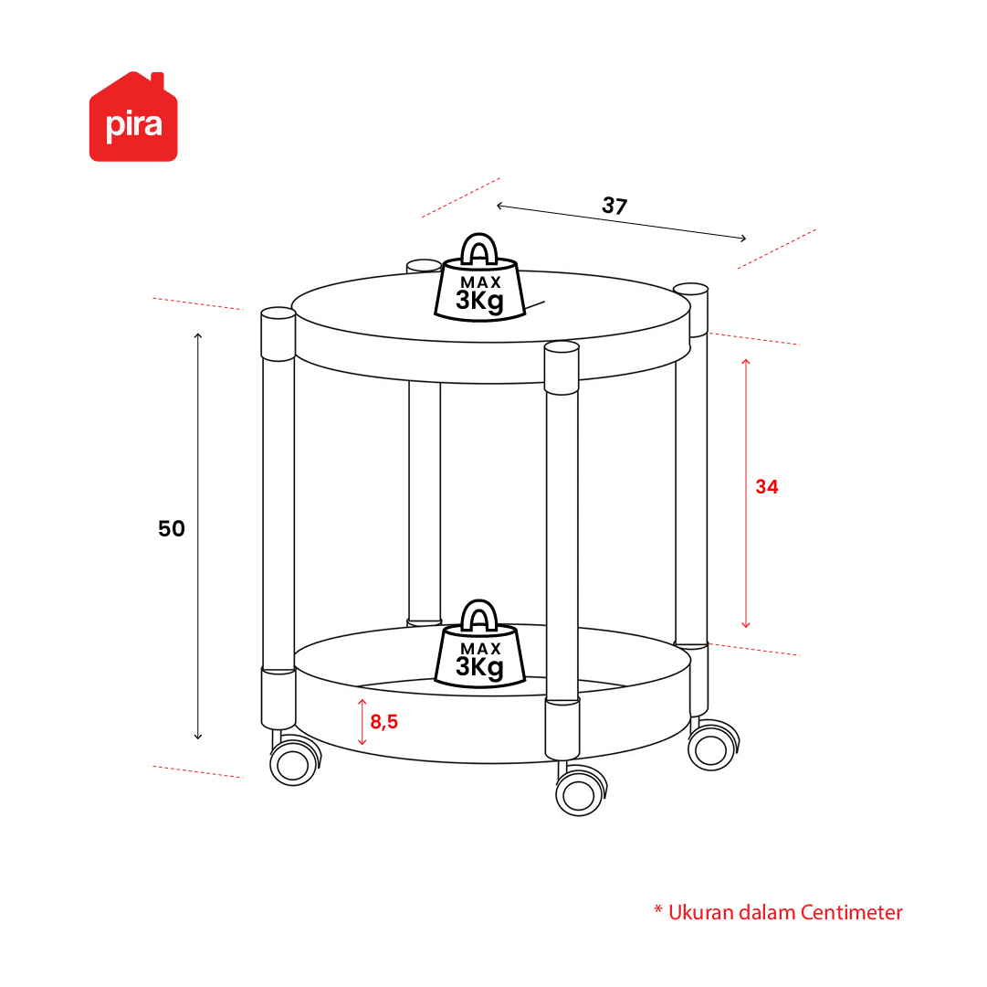 • Material PP (Polypropylene) + PVC. Kuat, ringan, anti air, dan mudah dibersihkan • Meja samping minimalis multifungsi, cocok untuk menyimpan barang kebutuhan sehari-hari • Memiliki 2 desain pilihan, yaitu Oval dan Bulat • Cocok untuk diletakkan di ruang tamu, ruang keluarga, kamar, dan ruang lainnya • Meja plastik tebal sehingga tidak mudah pecah • Top table menggunakan kaca tempered, lebih kuat dan tahan terhadap benturan • Jarak antar area penyimpanan 34cm, memungkinkan untuk menyimpan barang ukuran tinggi • Terdapat area penyimpanan terbuka di bagian bawah, cocok untuk menyimpan ekstra barang • Area penyimpanan bagian bawah berpagar dengan desain perforated, menjaga sirkulasi udara tetap optimal sehingga barang tetap kering • Dilengkapi roda yang dapat diputar 360°, memudahkan untuk berpindah tempat • 2 roda depan dilengkapi fitur lock, menjaga meja tetap di tempat yang diinginkan • Dikirim dalam flatpack namun mudah dirakit, tersedia petunjuk + video tutorial di YouTube • Tersedia jasa perakitan di area JABODETABEK, Surabaya, Sidoarjo dan Gresik • Garansi 14 hari, syarat & ketentuan berlaku |